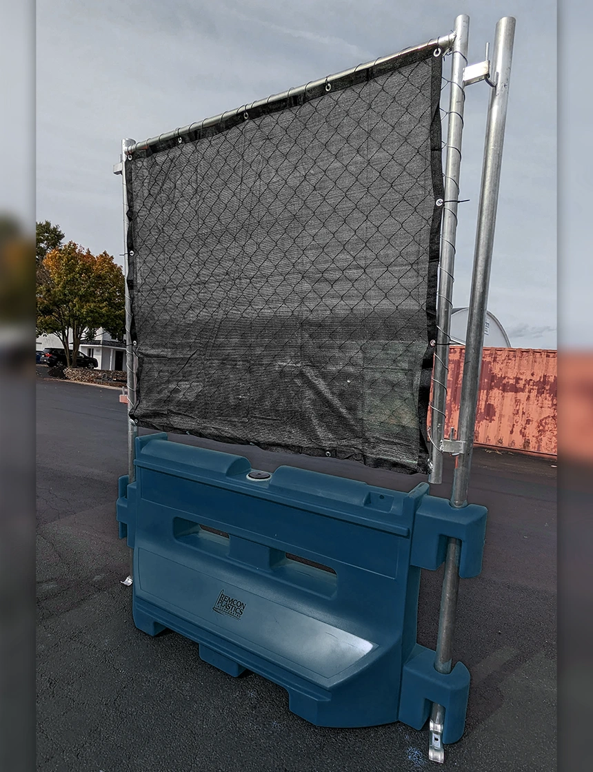 Our custom designed optional OnePro™ Fence Topper (Patent Pending) contains a fence panel which is 48" tall and 66" wide with specially designed long posts which act to connect to the next barricade, for use in construction and perimeter safety and security. Total height of the OnePro™ fence panel is 98" and they are 72 1/2" wide post to post.