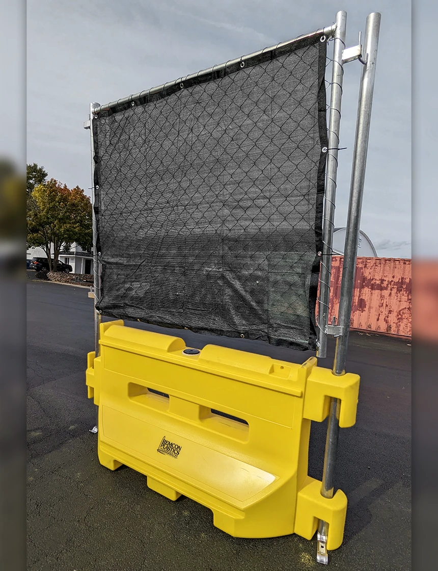 Our custom designed optional OnePro™ Fence Topper (Patent Pending) contains a fence panel which is 48" tall and 66" wide with specially designed long posts which act to connect to the next barricade, for use in construction and perimeter safety and security. Total height of the OnePro™ fence panel is 98" and they are 72 1/2" wide post to post.