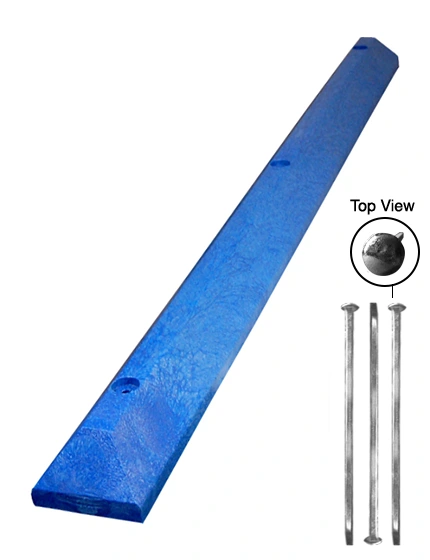 6' Blue, Heavy-Duty Solid Recycled Plastic Parking Block w/18" Heavy Duty Spikes