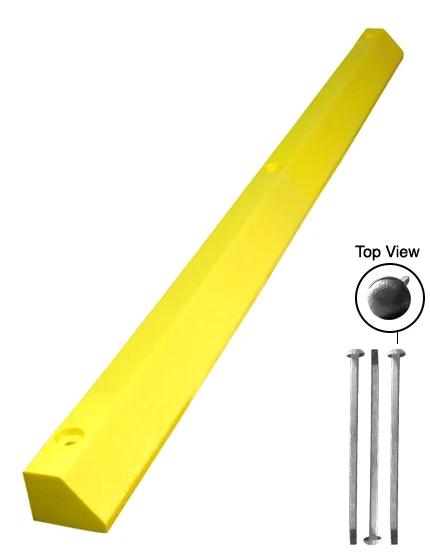 The UV-blocking color is molded throughout – no maintenance required. Highly-visiblility yellow, white, handicapped blue, charcoal gray, and concrete gray available. Simple installation thanks to recessed bolt holes and optional mounting hardware.