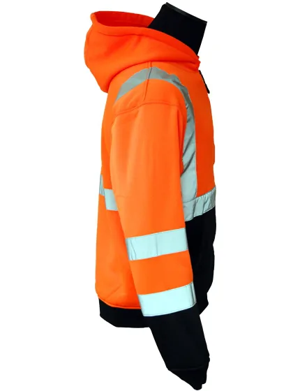Class 3, Orange, Hooded Full Zipper Sweatshirt, X-Large