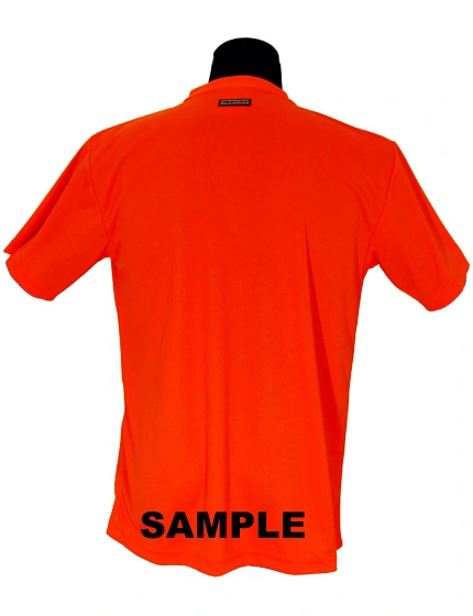 - High visibility orange microfiber T-shirts wick moisture away from wearer to keep you cool (and visible)