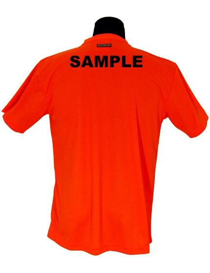 - High visibility orange microfiber T-shirts wick moisture away from wearer to keep you cool (and visible)